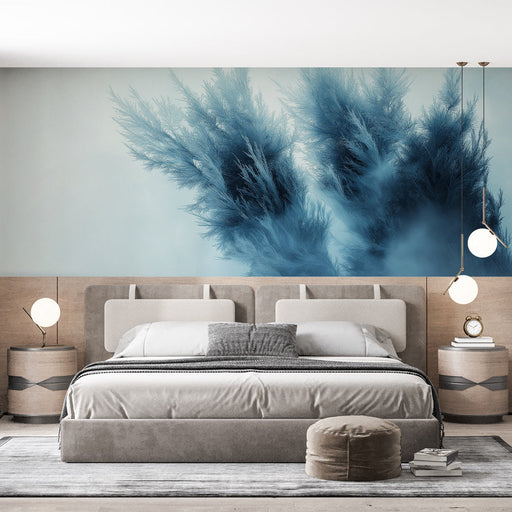 WonderMural```html Fagyott ágak – Ez a tapéta illusztráció finom, deres ágakat ábrázol, amelyeket egy lágy, kékes árnyalat fürdet, ami egy téli reggel nyugalm...
