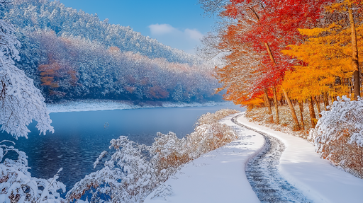 WonderMuralEz az elbűvölő tapéta egy téli ösvényt ábrázol, melyet fény öntöz be, körülvéve fenséges fákkal, melyek lángoló levelekkel vannak díszítve. A jelen...