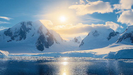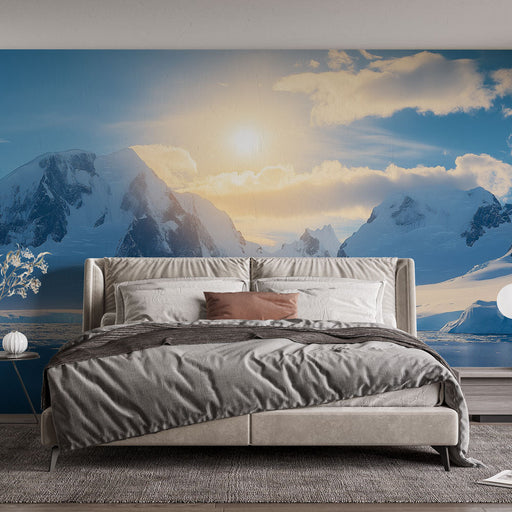 Teljes részletek megtekintéseFalfestmény tapéta sarkvidéki táj | Fenséges panoráma jeges hegyekkel naplementekor