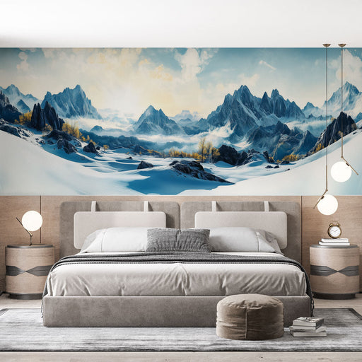 Art'loloHozza be otthonába a jeges csúcsok szépségét a hegyi fotótapétánkkal. Ez a dizájn egy fenséges téli tájat ábrázol, megragadva egy hóval borított he...