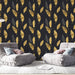 Nagy tapétaunk egy finom mintázatot mutat arany és fekete tollak sötét hátterén, ami eleganciát és luxust visz otthonába. A tollak csillogó árnyalatai melegséget és barátságos légkört teremtenek a szobában.