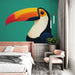 Falfestmény tapéta tukán | Színes tukán grafikus illusztrációja zöld háttéren