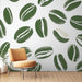 Fedezze fel a kávébabszem mintás falfestményeinket, amelyek modern és stílusos dizájnt kínálnak. A zöld árnyalatú babok finoman vannak nyomtatva fehér háttérre, friss és barátságos légkört teremtve.