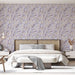 Ez a tapéta egy elegáns mintázatot mutat lila virágos ágakkal egy lágy lila háttéren, amely nyugodt és megnyugtató hangulatot teremt. A lila finom árnyalatai és az arany díszítések felidézik a természet szépségét, míg a virágok laza elrendezése mozgást és könnyedséget sugall.