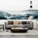 Fénykép tapéta tengerparti világítótoronnyal | Stílusos világítótorony a tengerparton, puha tengeri motívumokkal körülvéve
