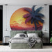 Falfestmény trópusi tájkép | Faldekoráció papírvágással pálmafával és naplementével