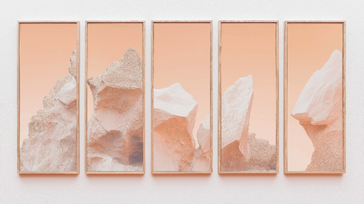 WonderMuralEz a fotó tapéta egy sor stilizált sziklaformációt ábrázol, őzönszínű őszibarack és fehér árnyalatokban, modern és minimalista esztétikát kínálva. ...
