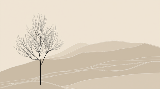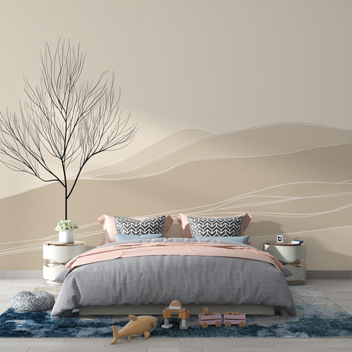 WonderMuralEz a minimalista falfestmény tapéta egy karcsú fát emel ki, amely finom és érzékeny vonalakkal van rajzolva, magányosan állva a hullámzó dűnék tájá...