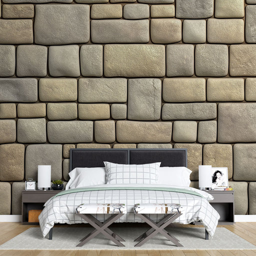 WonderMuralEz a falfestmény tapéta texturált kövek mintázatát mutatja be, szürke és bézs árnyalatokkal, amelyek természetes és nyers megjelenést kölcsönöznek....