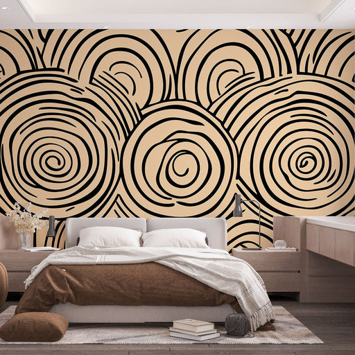 WonderMuralFedezze fel egyedi tapétánkat, amelyen fekete hullámos spirálok láthatók egy puha bézs háttéren. Ez a modern és merész dizájn művészi érintést ad b...