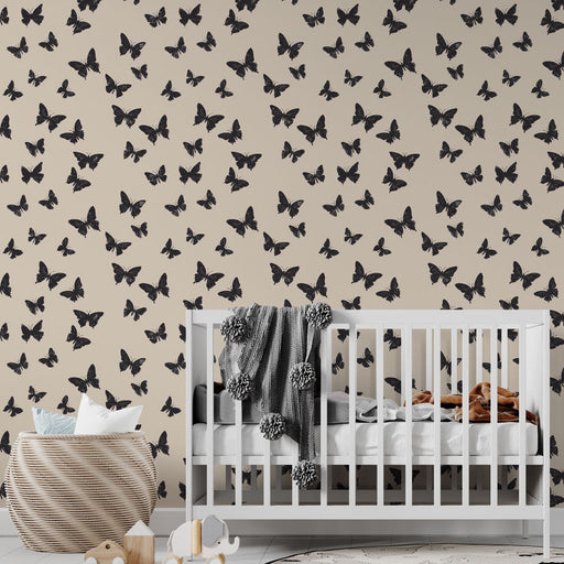 WonderMuralMural Wallpaper butterflies and flowers | Black butterfly pattern on beige background Fotótapéta pillangókkal és virágokkal | Fekete pillangó minta bézs hátteren