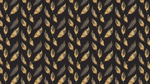 WonderMuralAz egyedi Tapete tapétánk egy szofisztikált mintázatot mutat arany és fekete tollakkal, melyek rendszeres mintázatban vannak elhelyezve egy mély fe...