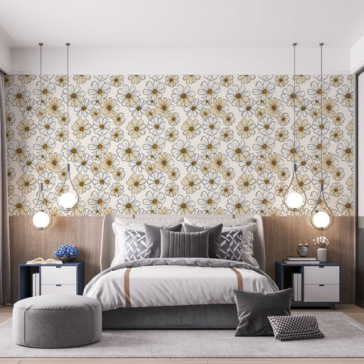 WonderMuralEz a tapéta egy bájos mintát mutat fehér és sárgás virágokkal, finoman kivitelezve, aranyos érintésekkel a közepén. Egy krémes háttéren a virágok ö...