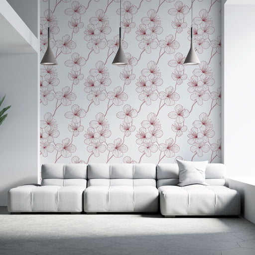 WonderMuralFedezze fel elegáns tapétánkat, melyet egy motívum díszít rózsaszín virágok finoman skiccelt fényes fehér hátterén. A ágak harmonikusan fonódnak ös...