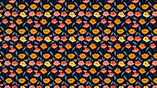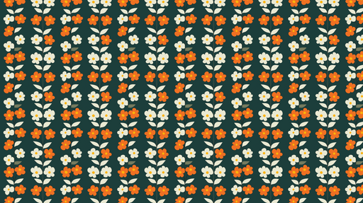 Teljes részletek megtekintéseFotótapé virágmintával | Narancssárga és fehér virágok ismétlődő motívuma sötét háttéren