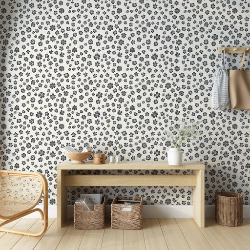WonderMuralEz az elegáns fotó tapéta finom mintázatú fekete virágokat mutat be krémszínű háttéren, frissességet és könnyedséget hozva az otthonába. A kis virá...
