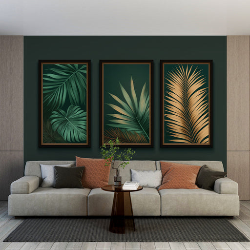 WonderMuralA falfestmény tapétánk kiemeli a trópusi levél illusztrációkat, amelyek egyszerre luxusosak és kifinomultak, mélyzöld árnyalatokat és arany akcentu...
