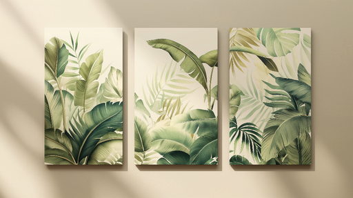 Teljes részletek megtekintéseFalikép trópusi lombozat | Egy buja levélkészlet zöld és krémszín árnyalatokban