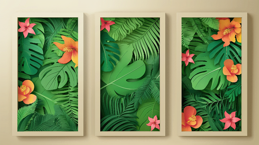 Teljes részletek megtekintéseFotótapé trópusi lombozattal | Egy trió dús zöld levéllel