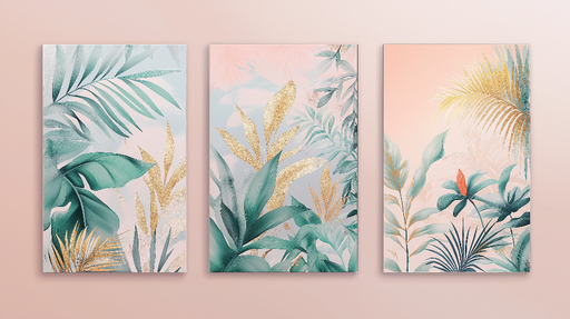 Teljes részletek megtekintéseFotótapé trópusi levél | Lenyűgöző növényi minták arany és pasztell érintésekkel