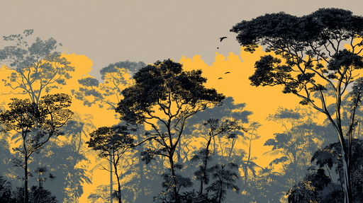 WonderMuralEz a fotó tapéta felidézi a trópusi erdő hangulatát finoman rajzolt fa-sziluettekkel feketében, arany és lágy árnyalatú elegáns háttérrel. Az ellen...