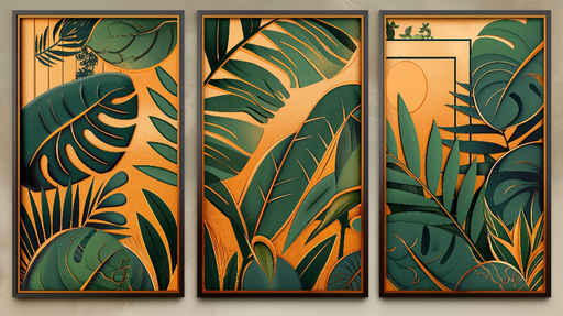 WonderMuralFedezze fel lenyűgöző falmatrica designunkat, amely fényes arany hátterén bemutatja a pompás trópusi leveleket. A levelek zöld árnyalatai frissessé...