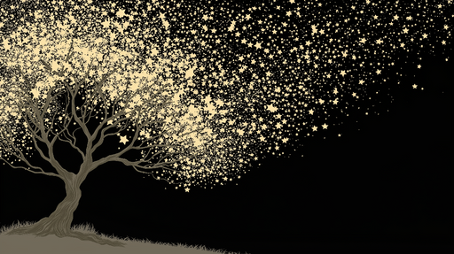 WonderMuralFedezze fel lenyűgöző fotó tapétánkat, amelyen egy stílizált fa látható ágakkal, amik az ég felé nyúlnak, aranyszínű csillagokat szórva egy sötét h...