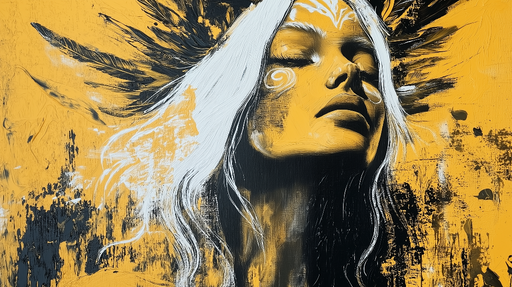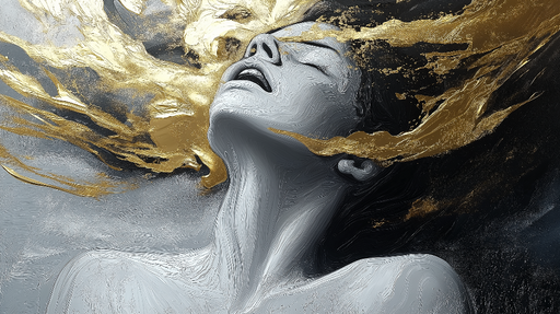 WonderMuralEz a lenyűgöző falfestmény egy éterikus arcot ábrázol, amelyet szürke árnyalatok és arany kiemelések fürdetnek. Gyönyörűen texturált, kifinomult és...