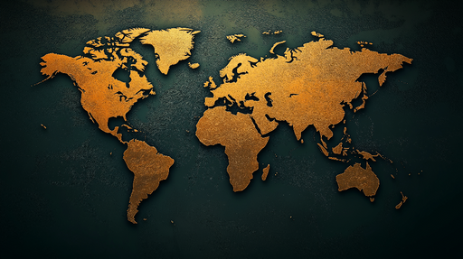 WonderMuralArany világ térkép tapéta sötét háttéren Ez a tapéta egy arany domborított világ térképet ábrázol sötét, texturált háttéren. A kontinensek finoman ...