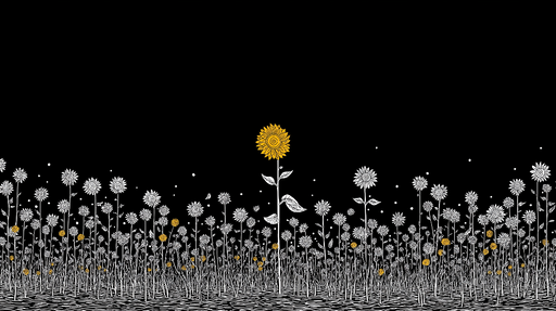Teljes részletek megtekintéseFotótapéta mező | Stilizált virágmező fekete háttérrel arany napokkal