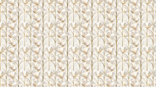 WonderMuralEz az elegáns Tapéta egy mintázatát mutatja be fehér virágokkal, arany díszítéssel, gondosan rajzolva. A virágok grafikus részletei, egy könnyű hát...