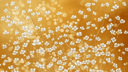 WonderMuralEz a finom illusztráció egy virágzó kertet idéz elő ragyogó arany háttérrel. A fehér virágok gyönyörűen kiemelkednek, elegáns és megnyugtató légkör...