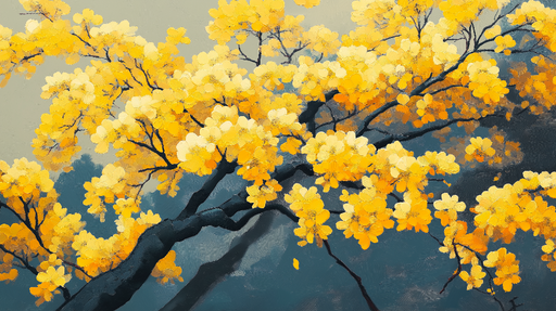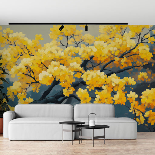 WonderMuralEz a fenséges falfestmény tapéta egy csodálatos virágzó ágak mintázatát ábrázolja, élénksárga virágokkal díszítve. A virágok meleg és vibráló színe...