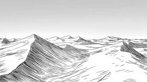WonderMuralEredeti tapetánk egy hegyvidéki tájat ábrázol fekete-fehérben, ahol a dombok lágy formái harmonikusan keverednek egy nagy stilizált nappal. A szürk...