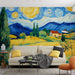 Ez a vidéki tájkép tapéta lenyűgöző jelenetet ábrázol aranyló mezőkkel és örvénylő élénk kék égbolttal. A ciprusfák zöldje nyugalmat sugároz, míg a kis fehér ház piros tetejével rusztikus bájt kölcsönöz. Tökéletes választás, hogy művészi és élénk légkört teremtsen a nappalijában vagy a munkahelyén.