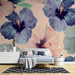 Falfestmény tapéta hibiszkusz virágok | Lila háttér és nagy színes virágok