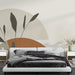 Ez a Falfestmény Tapéta minimalista és elegáns dizájnt mutat be, amelyet egyszerű geometriai formák és mély fekete levél sziluettek jellemeznek. A földszínek, mint a rozsda barna és a puha bézs, meleg és barátságos légkört teremtenek, míg a krém háttér finom hátteret biztosít, amely kiemeli az organikus mintákat.