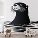 Falfestmény vidra | Fiatal vidra monokróm illusztrációja a vízben