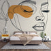 Absztrakt női arc finom fekete vonalakkal jelenik meg ezen a kortárs tapétán, amely lágy és rejtélyes érzelmet ragad meg. A finom vonalak és a sík narancsszín közötti kontraszt kiegyensúlyozott vizuális dinamikát teremt, miközben megőrzi a bizonyos komolyságot.
