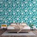 Fedezze fel gyönyörű virágos tapétánkat, amelyen fehér virágok és finom levelek mintázata látható egy fényes türkiz háttéren. Ez a design frissességet és vitalitást kölcsönöz a belső térnek, ideális a szoba hangulatának feldobásához.