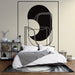 Ez a tapéta lenyűgöző absztrakt mintával rendelkezik, fekete geometriai formák kombinációjával egy puha krém színű háttérrel. A vonalak és görbék játéka érdekes vizuális dinamikát teremt, művészi érintést adva bármelyik szobának.
