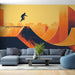 A mi falfestmény tapétánk a gördeszkázás dinamikus világát idézi fel merész dizájnnal, amely gördeszka rámpákat ábrázol narancssárga és sárga színátmenetben. Egy akcióban lévő deszkás árnyéka lebeg a háttérben lévő stilizált városi táj felett, energikus és kortárs hangulatot teremtve.