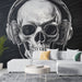 Falfestmény koponya-fej | Művészi illusztráció egy fejhallgatót viselő stilizált koponyáról