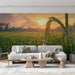 Falfestmény tapéta rizs táj | Rizsföld napkeltekor harmatcseppekkel