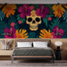 Falfestmény tapéta koponya | Bújócska trópusi virágok között