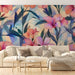 Falfestmény tapéta virágos | Pasztell virágok és finom lombozat