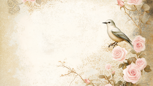 Visualizza tutti i dettagliCarta da parati shabby chic | Uccello delicato e rose pastello su sfondo morbido