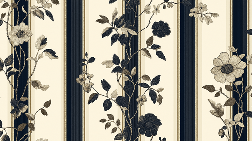 WonderMuralQuesta carta da parati shabby chic presenta un sontuoso motivo floreale composto da fiori ricamati ed eleganti foglie, su uno sfondo di strisce arm...