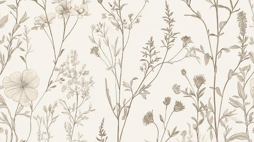WonderMuralQuesta carta da parati shabby chic presenta un elegante motivo di fiori disegnati a mano su uno sfondo beige chiaro, creando un'atmosfera calda e a...
