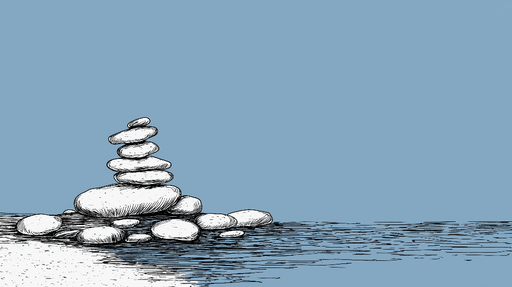 WonderMuralQuesta carta da parati murale illustra una composizione armoniosa di pietre accuratamente impilate, delicatamente posizionate su uno sfondo blu pas...